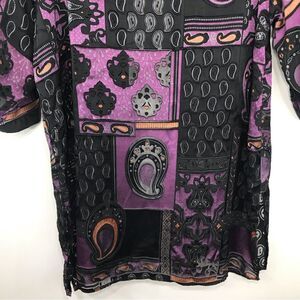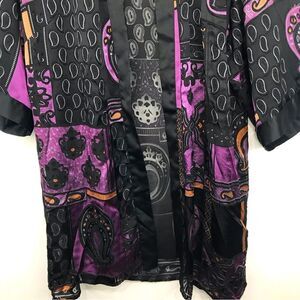 DEX Black Purple Paisley Pattern Semi Sheer Kimono Duster Tunic Cardigan