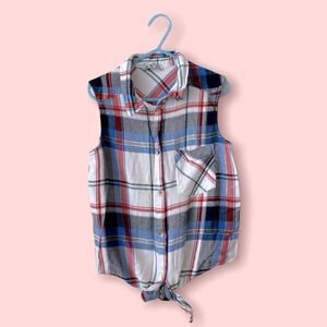 ❤️ DEX Girls Sleeveless Plaid Button down Top Size L ❤️
