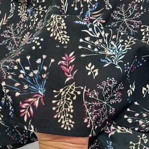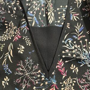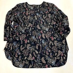 DEX Long Sleeve Sheer Floral Top - Size (M) Black with floral print all over, 3/4 sleeve, sheer all over, good condition, normal wear, clips at sleeve have slight wear (see photos)