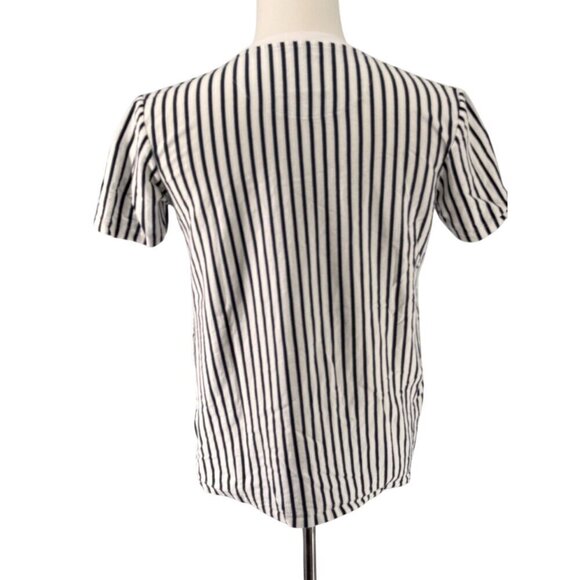 D&F Ricky Singh Black & White Vertical Stripe Tee | Size Small