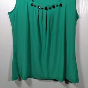 D.F.A. New York Green Embellished Sleeveless Top Size: Large
