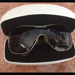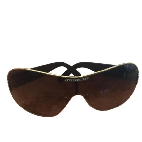 Brown and gold tone Dolce & Gabbana shield sunglasses with crystal embellished logo. Includes case. 100% authentic
