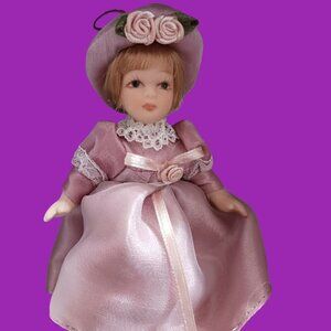 DG Creations Victorian Porcelain Doll Ornament In Pink Dress & Hat