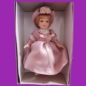 This exquisite Victorian porcelain doll ornament from DG Creations features a beautifully crafted pink dress and hat. Ideal for collectors or as a refined decorative piece, this doll exudes elegance and timeless charm.brand new open box from smoke and pet free home.