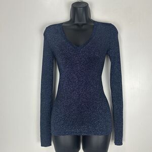 PulloverV neckLightweight Very stretchyBeautiful Blue metallic color Raw hem and cuffs