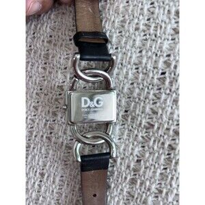 D&G DONNA LADIES BLACK LEATHER STRAP WATCH Analog Diamonds
