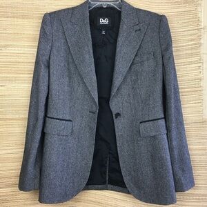 D&G Dolce & Gabana Authenticated Wool Blend Tweed Chevron In Gray Size IT46 US10