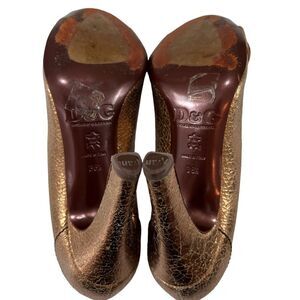 D&G Dolce & Gabbana Metallic Crackled Leather Buckle Pumps