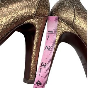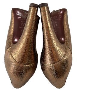 Crackled bronze/gold leather with a bronze/gold buckle detail and open toe.