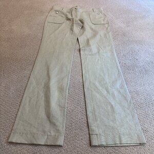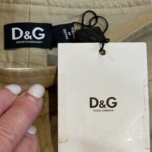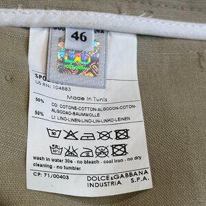D&G Dolce & Gabbana Pants Linen Blend Cuff Patch Pocket Tan Khaki Size 46 IT / 10 US NWOT Straight Leg Mid Rise Boho European Italian