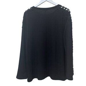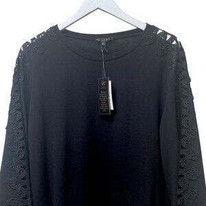 DG2 DIANE GILMAN Black Top Size XL Lace Tee Long Sleeve Womens Rayon Blend NWT