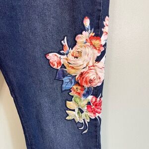 DG2 DIANE GILMAN Jeans 14 Rose Patch Denim Stretch Ankle Stretch Washed Blue