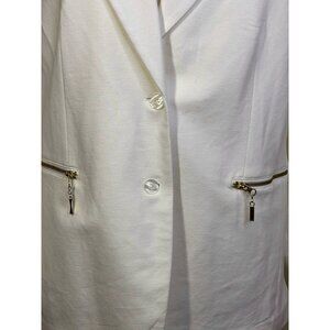 DG2 Diane Gilman Blazer Womens 1X White Zip Pocket Knit Open Front Jacket