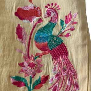 DG2 by Diane Gilman yellow jeans have embroidered peacocks and flowers. Size 6P Flat measure W-31” Inseam-29” Good condition.