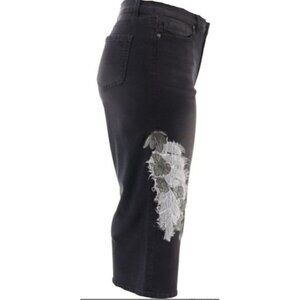 DG2 Diane Gilman Embroidered Cropped Wide Leg Jeans Size 14 Black 696-858