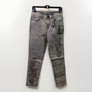 DG2 Diane Gilman Jeans Womens High Rise Floral Sequin Denim Gray Wash Sz 8 NWT