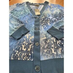 DG2 Diane Gilman Royal Blue Multi Clipped Jacquard Knit Cardigan Sweater NWT 1X