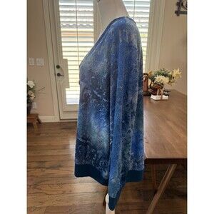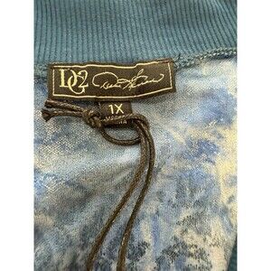 DG2 Womens Blue Burnout Velvet Cardigan Sweater 1X Abstract Textured Button Front