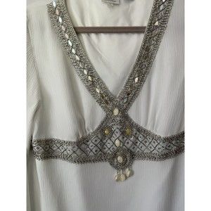 DG2 Diane Gilman Sequin Bead Embellished White Tunic size S Summer Glam Chic