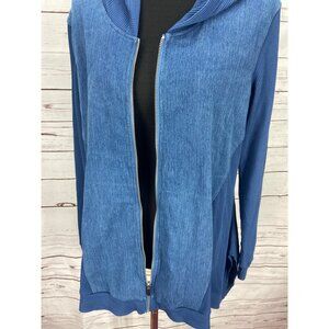 DG2 Diane Gilman Stretch Twill Knit Denim Jacket Hoodie MIDTONE Size XL
