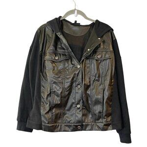 DG2 Diane Gilman Womens Hoodie Jacket Size M Solid Black Faux Leather Sweatshirt