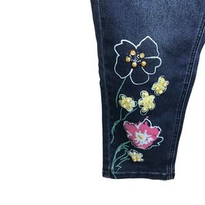DG2 Diane Gilman Women's Skinny Jeans Floral Embroidered Dark Wash Cotton 4T NWT