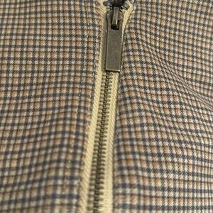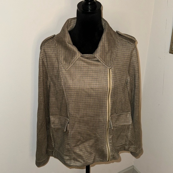 DG2 Diane Gilman tan olive green houndstooth zipper front jacket Sz M