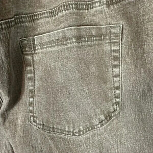 DG2 denim pants by Diane Gilman. Gray tan color. Denim. Has decorative stud design on the bottom. Zip closure and button closure. Pockets on front and back. Belt loops. Excellent condition. Size 22W tall.