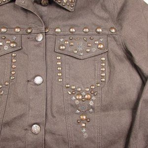 Lots of fun bronze colored embellishments add some sparkle to this jacket