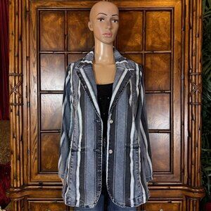 DG2 Multi Wash Stripe Stretch Cotton Blend Denim Blazer