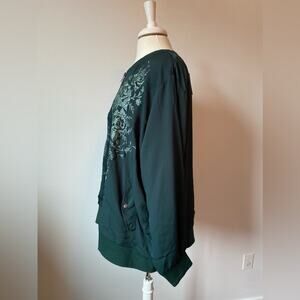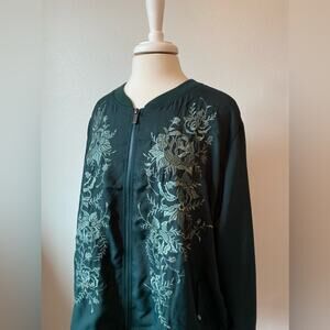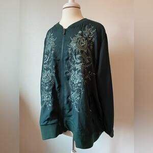 DG2 NWT Retro Boho Embroidered Artsy Floral Green Festival Bomber Jacket 2X