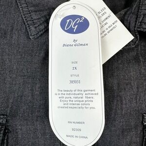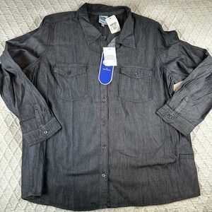 DG2 by Diane Gilman 2X Black Denim Long Sleeve Button Down Shirt New
