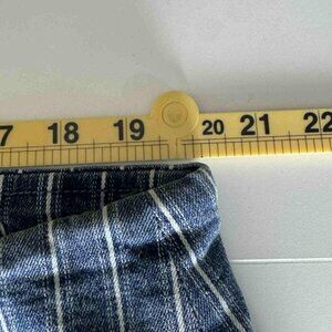 DG2 by Diane Gilman Blue Pinstripe Denim Bermuda Shorts 2X High Rise Raw Hem Y2K