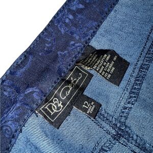 DG2 by Diane Gilman Blue Straight Leg Pants with Rhinestones Floral Pattern