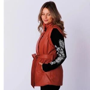 DG2 by Diane Gilman Faux Leather Puffer Vest Clay - Size L