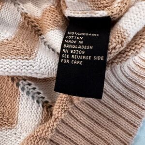 DG2 by Diane Gilman Puff-Sleeve Zig Zag Knit Chevron Cardigan. Tan/ White. Sz: M. Soft organic cotton sweater knit with zig zag jacquard patterns. V Neck. Short puff design with pleat detail at shoulder caps. Ribbed knit. Great used condition.