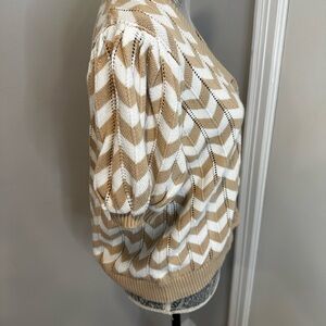 DG2 by Diane Gilman Puff-Sleeve Zig Zag Knit Chevron Cardigan. Tan/ White. Sz: M