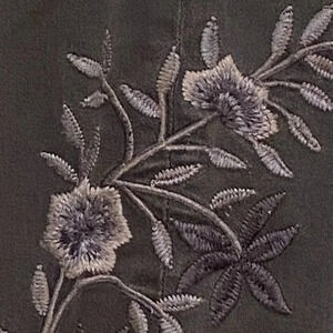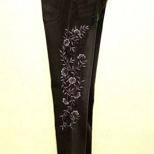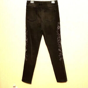 DG2 by Diane Gilman Stretch Jeans Grey/Black with embroidered floral Size (10T). Beautiful Slate Grey/Black Jeans with various shades of grey throughout. Intricate floral embroidery down both sides with lighter shading down the front of jeans. Skinny jeans with virtual stretch for a comfortable fit.