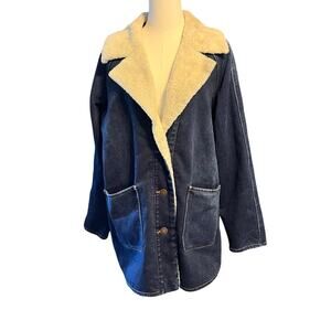 DG2 by Diane Gilman Vintage-Style Denim Sherpa Coat Indigo. Size Large