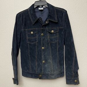 DG2 By Diane Gilman Blue Suede Leather Jacket Size Small