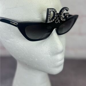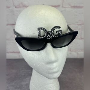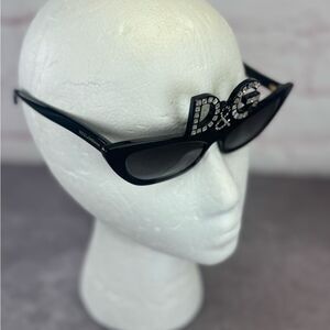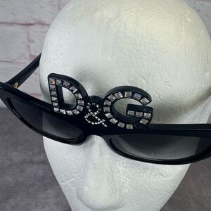Authentic D&G Dolce & Gabbana Black Cat-Eye Sunglasses Silver Accents