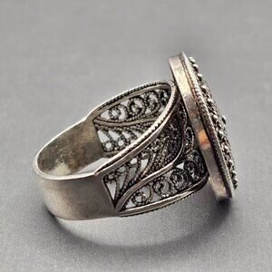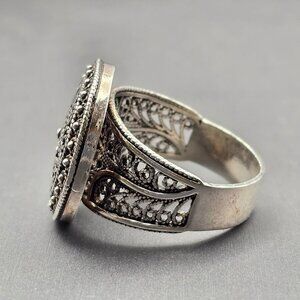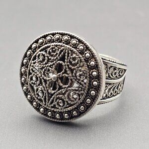 DGS Sterling Silver Ornate Filigree Signet Ring Size 10 Round Front 8.17g Turkey