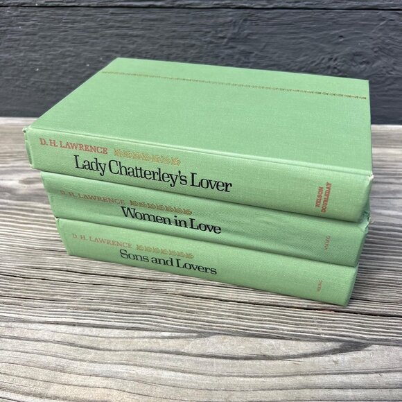 D.H. Lawrence Novels, Set of Three Books, Green Vintage Hardcovers