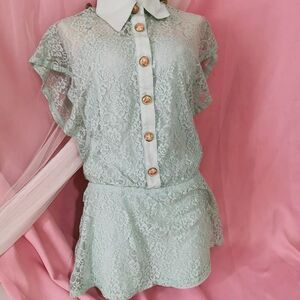 One size new with tags D.I.A. mint color dress shipped with care. It has a button up top, one button on each shoulder, a tube top mini dress under the lace layer. Fit comfortably on mannequin measurements: Bust : 35" , Waist : 26.5" , Hip : 36" .