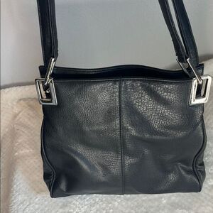 DIAHANN CARROLL Handbag Shoulder Purse Tote Black Leather Silver Hardware