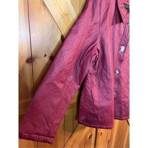 DIALOGUE DARK RED LEATHER LONG SLEEVE JACKET SIZE Large quilted, turn latches, side pockets pit to pit 21” length 26” (2896)