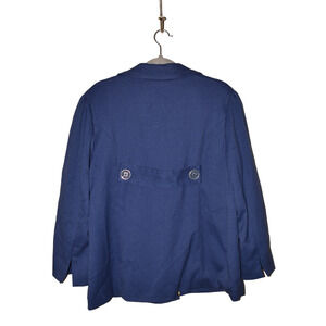 DIALOGUE NEW $97 Puff Shoulder Textured Button-Up Jacket in Blue Large