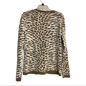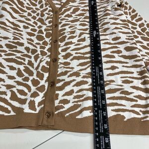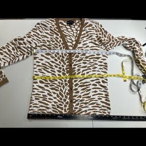 DIALOGUE, Animal Print,Women’s Cardigan,Tan&White, Size small, 63% rayon, 37% nylon, buttons down the front, V-neck, very stretchy. Please see approximate measurements in pictures before purchasing. Send me an offer. I will either accept or counter! Don’t forget to bundle and save.