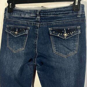 DIAMANTE Distressed Y2K Mid Rise Skinny Stretch Jeans Size 9