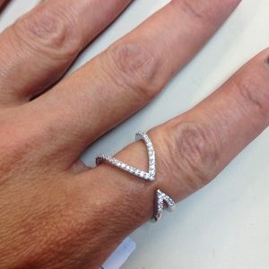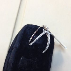 14k white gold open fashion ring with pave diamonds. It's approx. .24ctw in size 8. This ring fits beautifully on the index or pointer ring finger! Great style and an absolute fashion piece! Never been worn and has original tags.